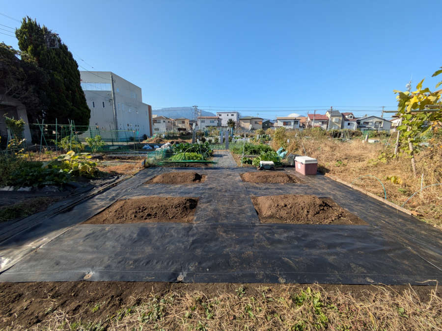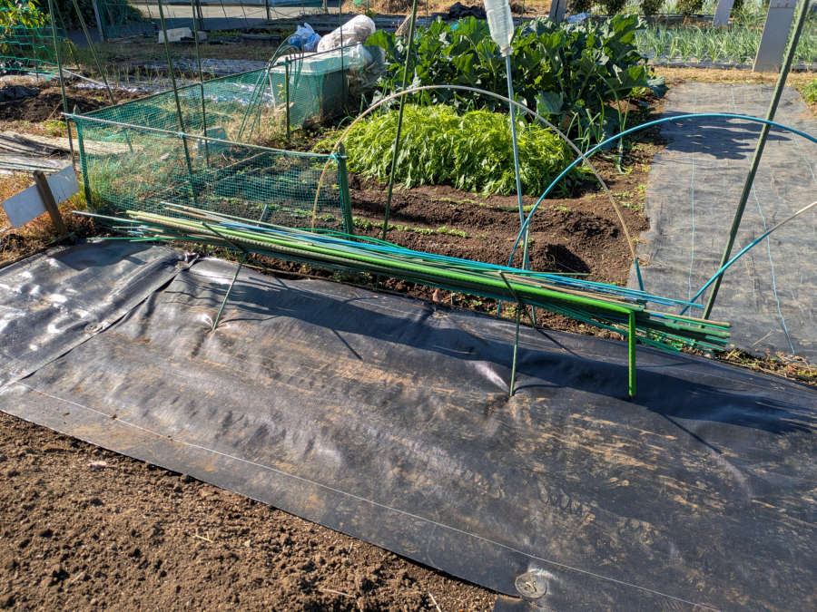 畝が4つになったので、コンテナに入っていた防虫ネットも減らしました。