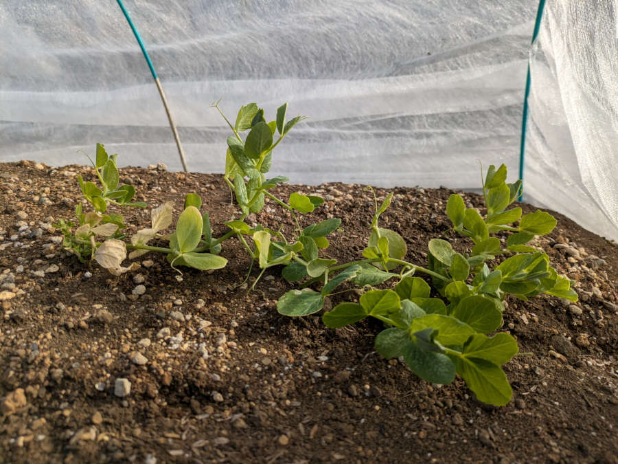 寒さで弱っていたエンドウマメ。